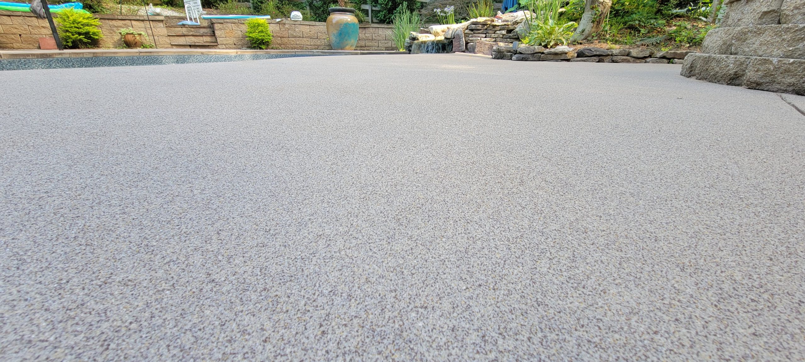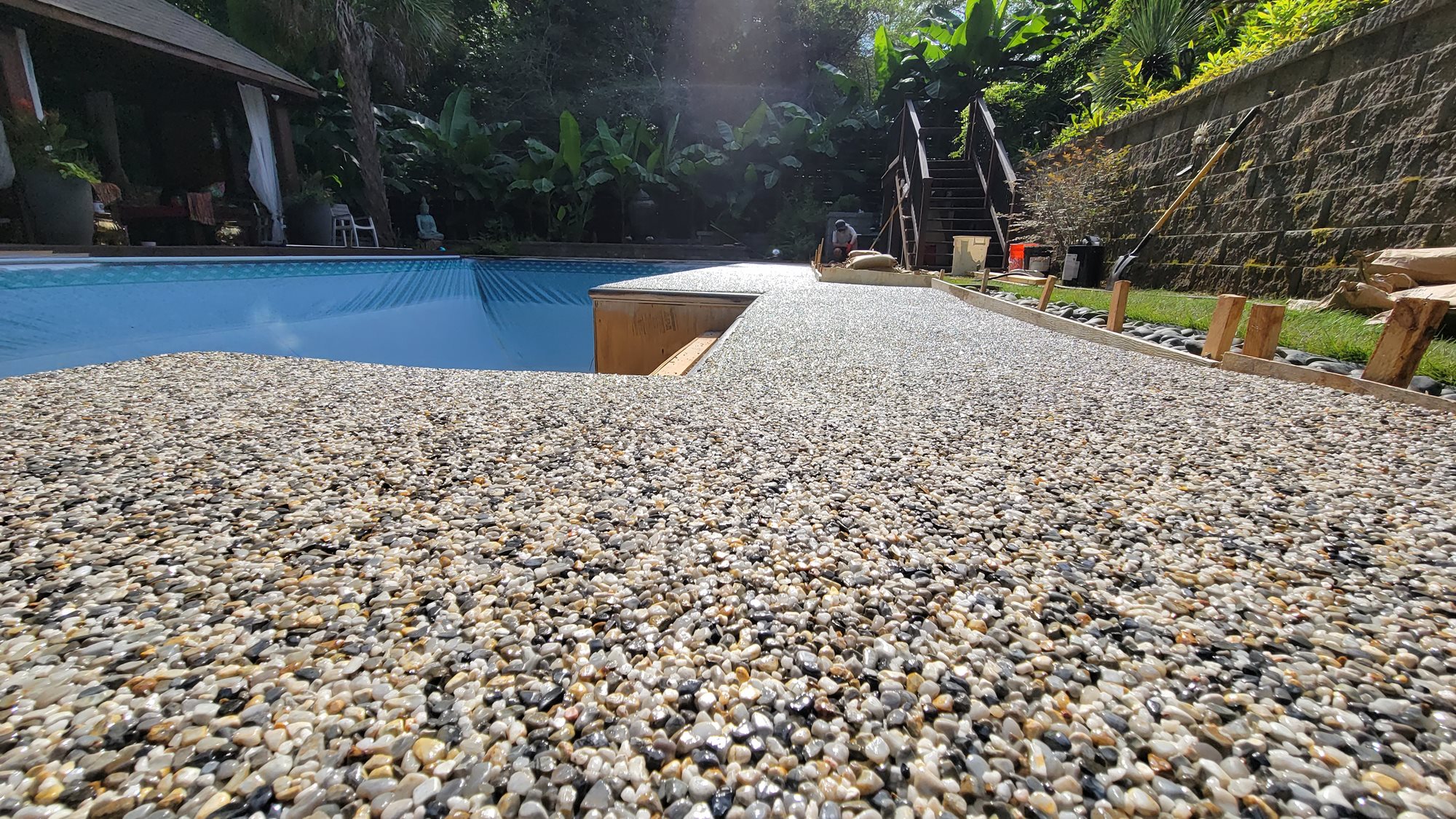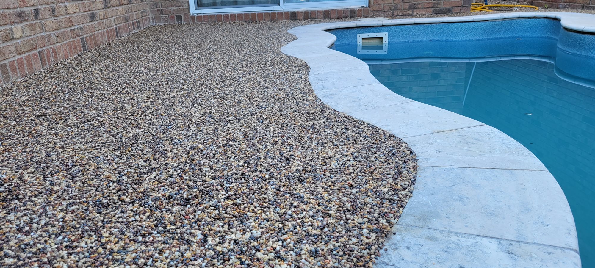• Pebble Epoxy Coatings: Goes down 1/2″ thick and it’s porous so never any puddles, beautiful and durable